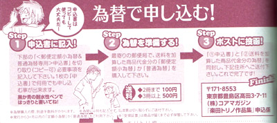 雑誌drapの最後に挟まっている郵便振替用紙でも、郵便局にある用紙でも構わないそうです。